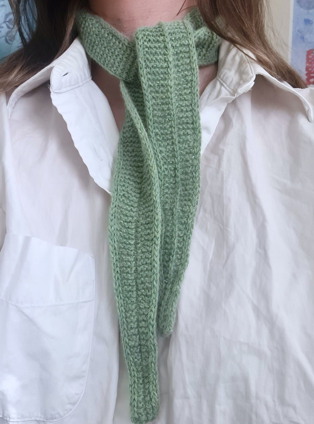 Mjuk och gosig scarf som håller halsen varm, den varma gröna färgen är som att knyta fast vårens första blad på halsen!