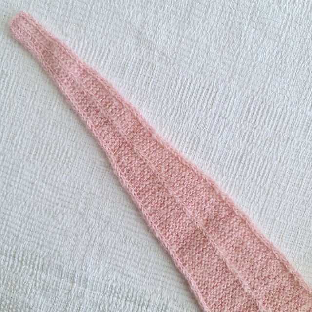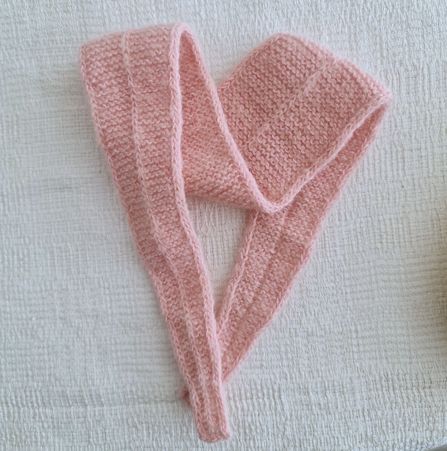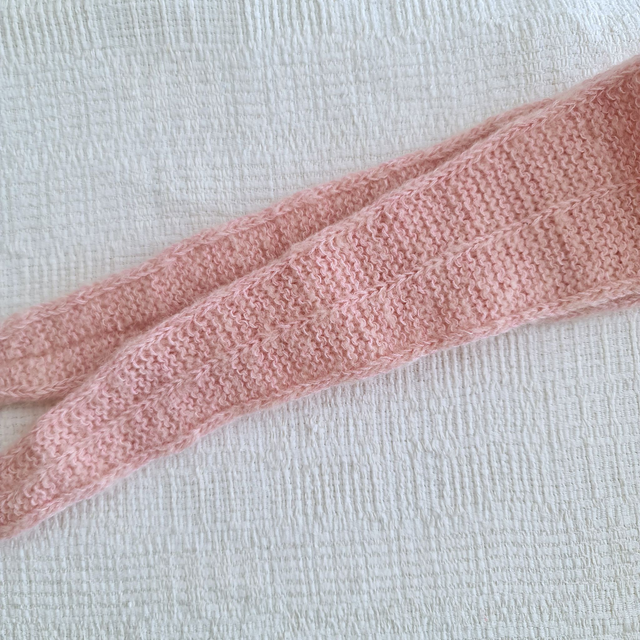 Handstickad i två trådar bomullsgarn tillsammans med en tråd mohairgarn, skyler perfekt mot vårens kalla vindar.